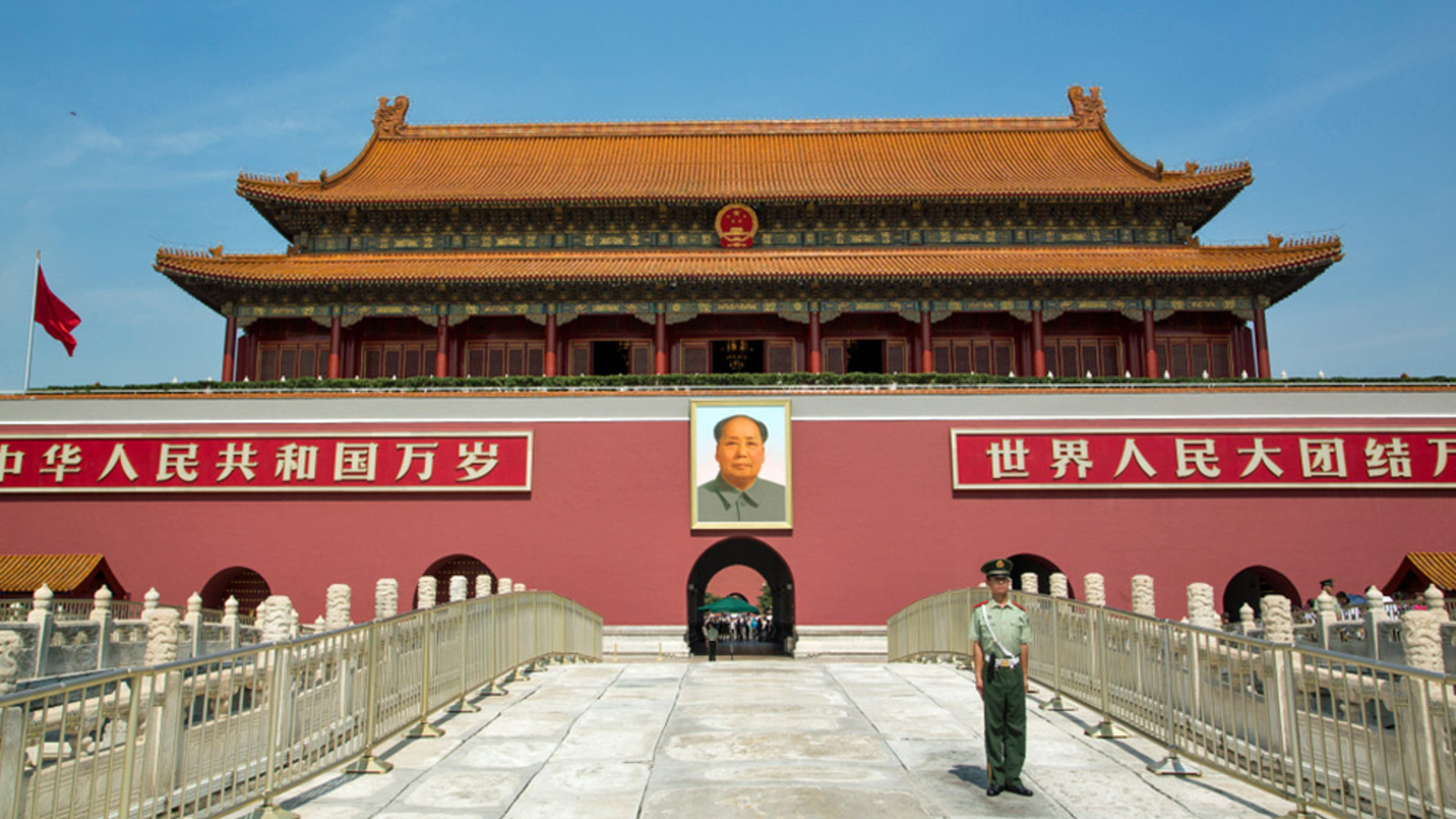 (4) Der Tian’anmen ist ein Platz im Zentrum von Peking (auch Beijing), der Hauptstadt der Volksrepublik China. Der Tian’anmen-Platz wurde unter dem Namen Platz (am Tor) des Himmlischen Friedens bekannt im Zusammenhang mit dem sogenannten Tian’anmen-Massaker. Am 3. und 4. Juni 1989 wurden Proteste der insbesondere studentisch geprägten Demokratiebewegung im Zentrum Pekings gewaltsam niedergeschlagen. Nach Verhandlungen zwischen dem Militär, das gegen die Demonstranten vorging, und den Studenten wurde der Tian’anmen friedlich geräumt. Es soll allerdings in anderen Teilen Pekings zu Gewalt gekommen sein. Je nach Quelle sollen dabei mehrere Hundert bis zu mehreren Tausend Menschen ihr Leben verloren haben.
